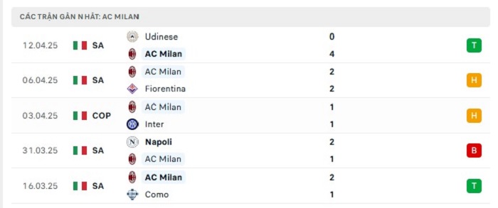 Phong độ gần đây AC Milan vs Atalanta