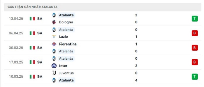 - Phong độ Atalanta