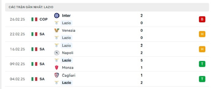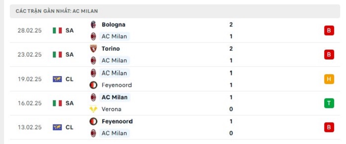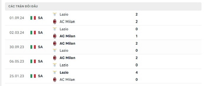 Bảng  bóng đá trận đấu AC Milan vs Lazio