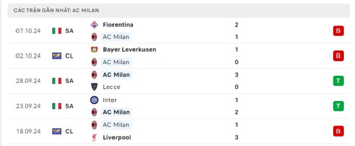 - Phong độ AC Milan