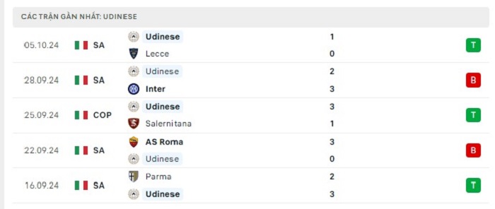 - Phong độ Udinese