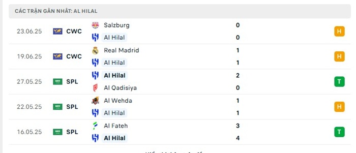Phong độ gần đây Al Hilal vs Pachuca