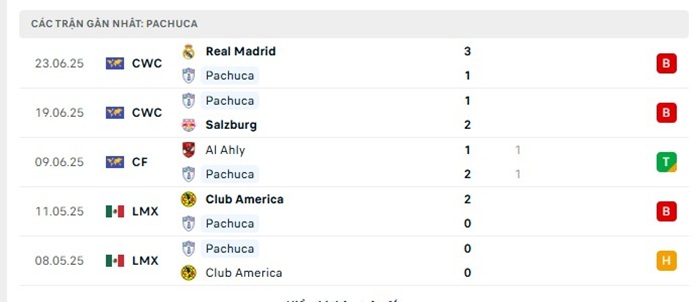 - Phong độ Pachuca