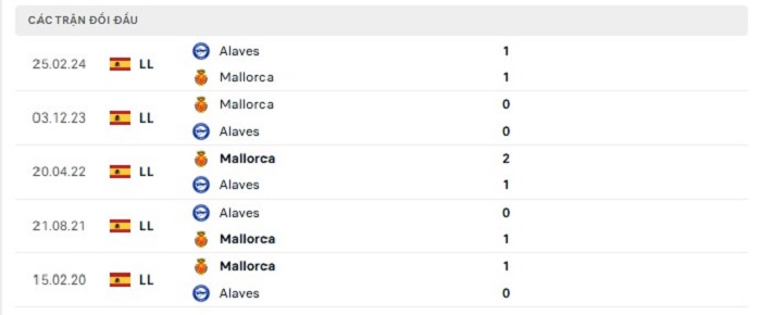 Bảng bóng đá trận đấu Alaves vs Mallorca