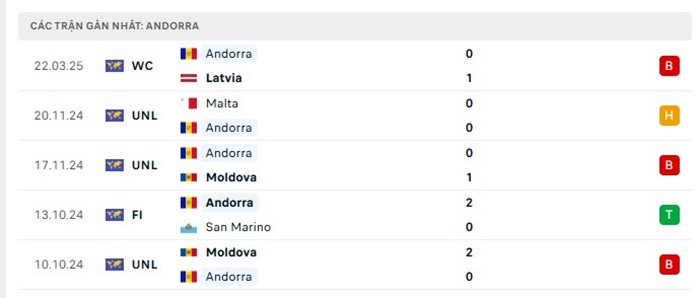 - Phong độ Andorra