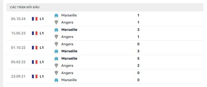 Bảng bóng đá trận đấu Angers vs Marseille