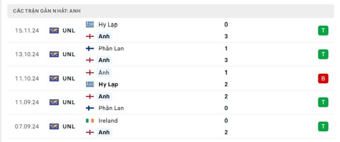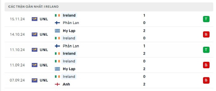 Phong độ gần đây Anh vs Ireland