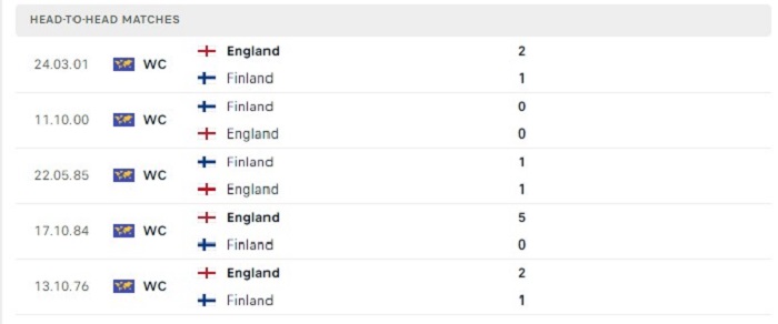 Có tới 3 trong 5 lần gặp nhau trước đây của hai đội cũng đã xuất hiện khá nhiều bàn thắng ghi được, điều này cũng cho thấy được phần nào đó lối chơi khá phóng thoáng của hai đội đã tạo nên. Thực tế mà nói thì hàng thủ của Phần Lan không tốt ở thời điểm này khi nhận tới 3 bàn thua trước đối thủ không quá mạnh như Hy Lạp, do đó mà trước tuyển Anh vượt trội hơn nhiều thì khả năng tỷ số cao của trận đấu tiếp tục có thể xuất hiện nhiều trong trận.