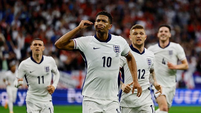 Anh: Jordan Pickford, Marc Guehi, John Stones, Kieran Trippier, Kyle Walker, Jude Bellingham, Declan Rice, Trent Alexander-Arnold, Harry Kane, Phil Foden, Bukayo Saka