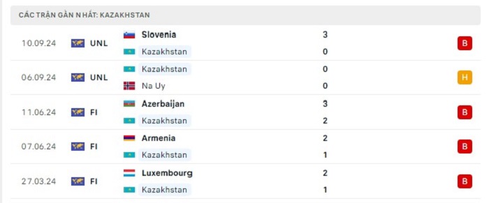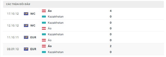 Bảng bóng đá trận đấu Áo vs Kazakhstan