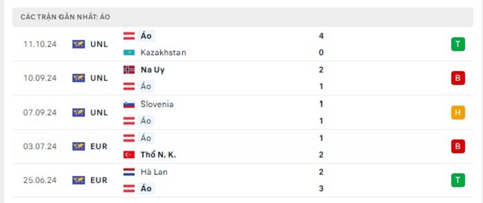 Phong độ gần đây Áo vs Na Uy