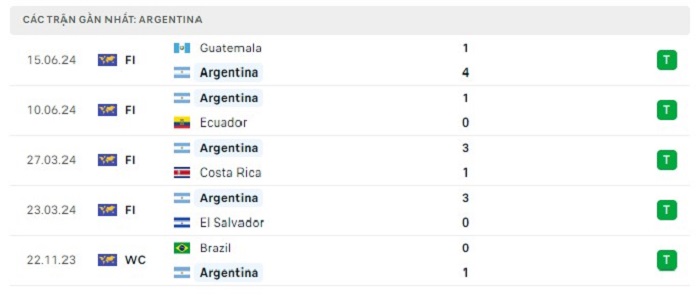 Phong độ gần đây Argentina vs Canada