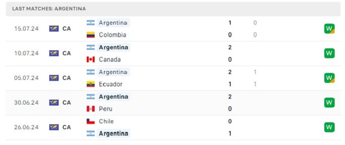 Phong độ gần đây Argentina vs Chile