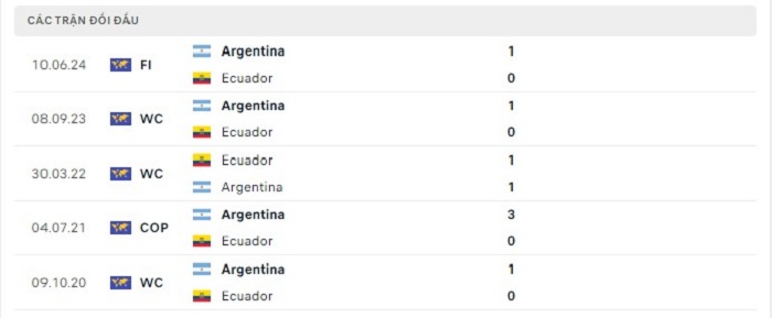 Phong độ gần đây Argentina vs Ecuador