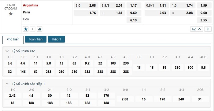 Soi kèo châu Á, kèo chấp Argentina vs Peru