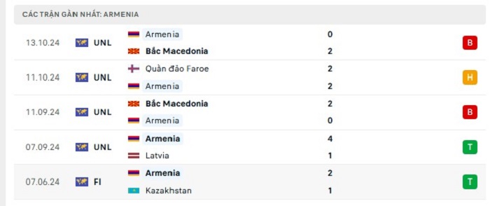 Phong độ gần đây Armenia vs Quần đảo Faroe
