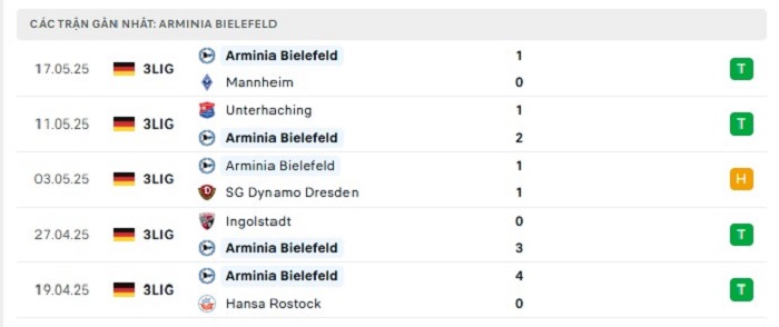 Phong độ gần đây Arminia Bielefeld vs Stuttgart