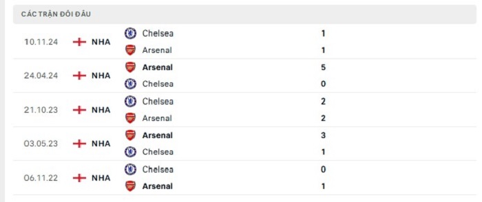 Bảng bóng đá trận đấu Arsenal vs Chelsea