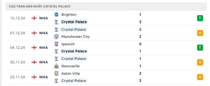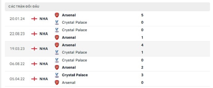 Bảng bóng đá trận đấu Arsenal vs Crystal Palace