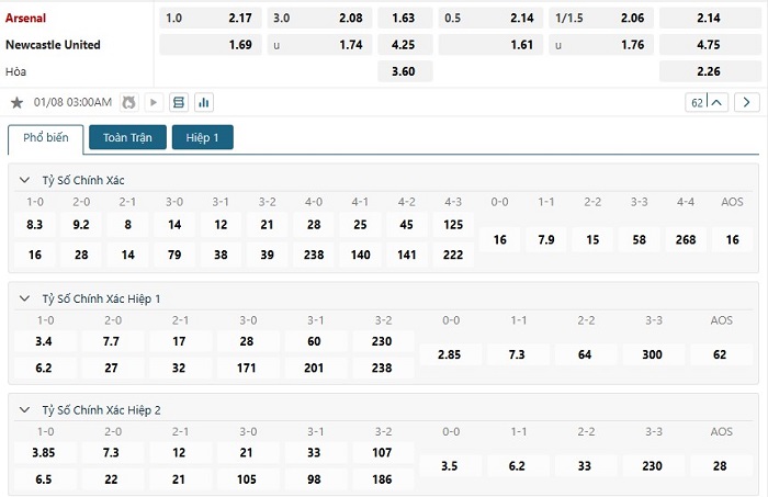 Soi kèo tỷ số Arsenal vs Newcastle