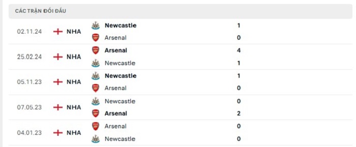Lịch sử đối đầu của Arsenal vs Newcastle