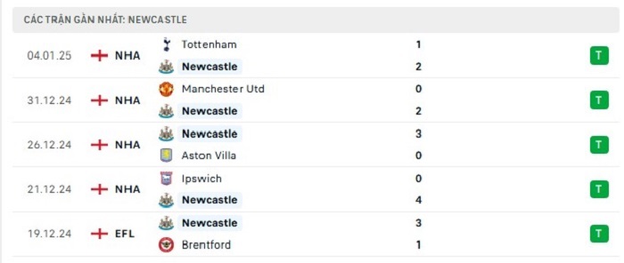 • Phong độ Newcastle