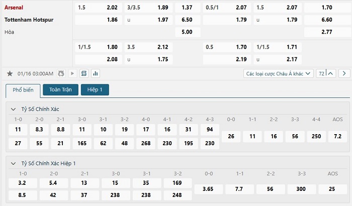 Soi kèo châu Á, kèo chấp Arsenal vs Tottenham