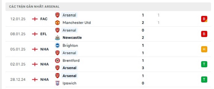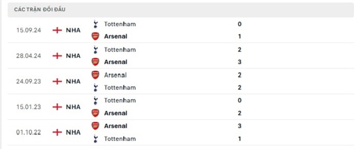 Phong độ gần đây Arsenal vs Tottenham