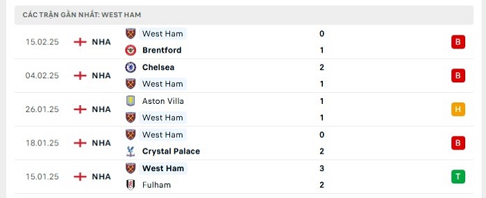 - Phong độ West Ham