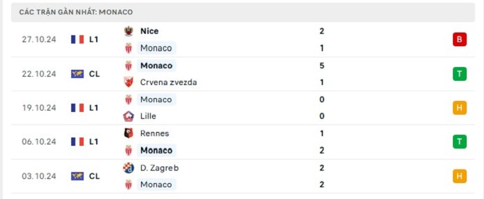 Bảng bóng đá trận đấu AS Monaco vs Angers