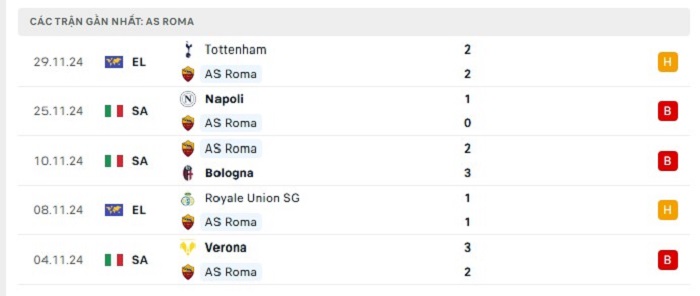 Bảng  bóng đá trận đấu AS Roma vs Atalanta