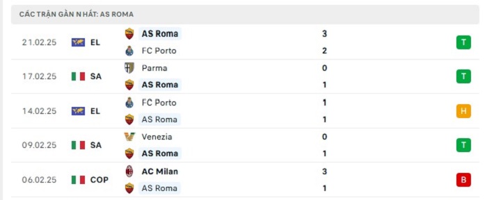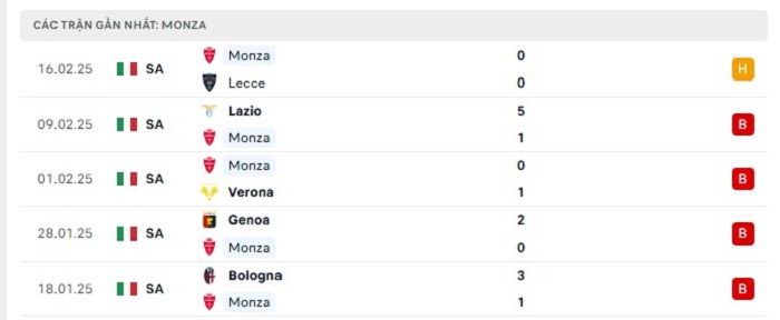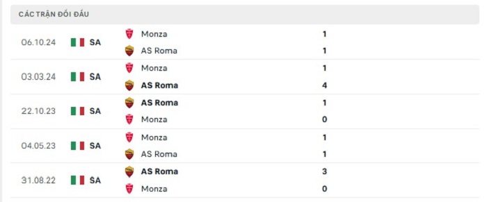 Bảng  bóng đá trận đấu AS Roma vs Monza