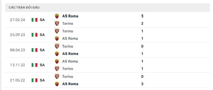 Bảng bóng đá trận đấu AS Roma vs Torino