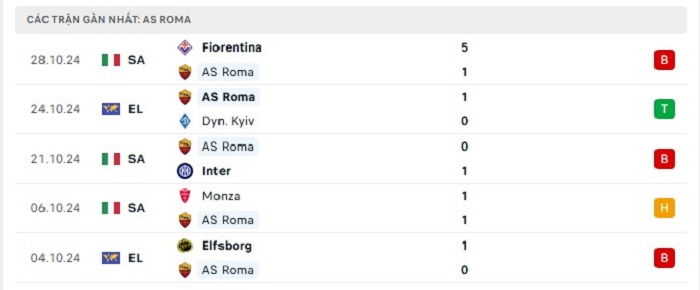 - Phong độ AS Roma