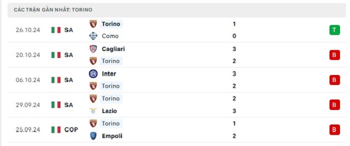 - Phong độ Torino