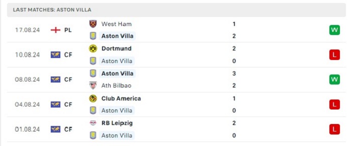 - Phong độ Aston Villa