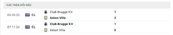 Lịch sử đối đầu của Aston Villa vs Club Brugge