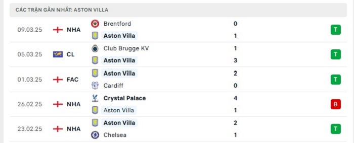 • Dự đoán tỉ số trận đấuAston Villa vs Club Brugge