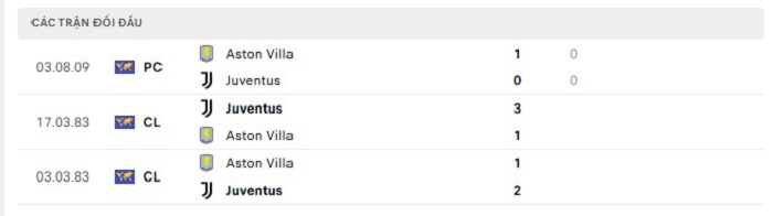 Bảng bóng đá trận đấu Aston Villa vs Juventus