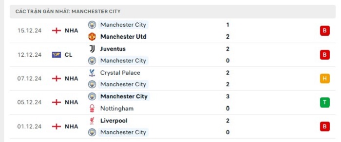 • Phong độ Manchester City