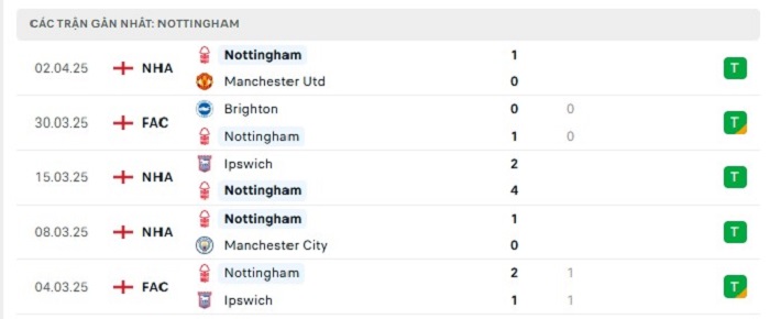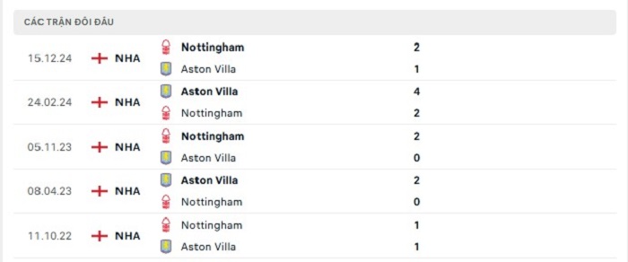 Phong độ gần đây Aston Villa vs Nottingham