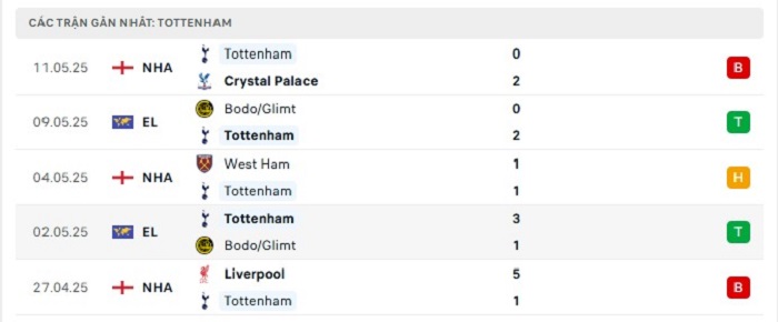 • Phong độ Tottenham