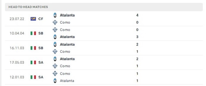 Những chênh lệch giữa Atalanta và Como trong quá khứ cũng đã được thể hiện rất rõ khi mà 5 lần gặp nhau gần đây của hai đội Atalanta đang có được thành tích bất bại, điều đáng nói sức mạnh của đội chủ nhà cũng đã được thể hiện trước Como khi họ có tới 4 trận thắng kèo châu Âu và đó đều là những chiến thắng khá ấn tượng, do vậy mà với thực lực hiện tại của mình việc Atalanta có được một thắng lợi theo mốc kèo châu Âu cũng là điều đang nằm trong khả năng của họ.