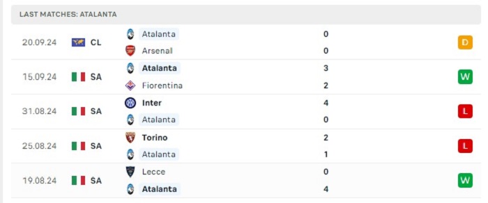 - Phong độ Atalanta