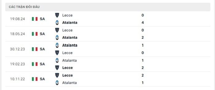 Phong độ gần đây Atalanta vs Lecce