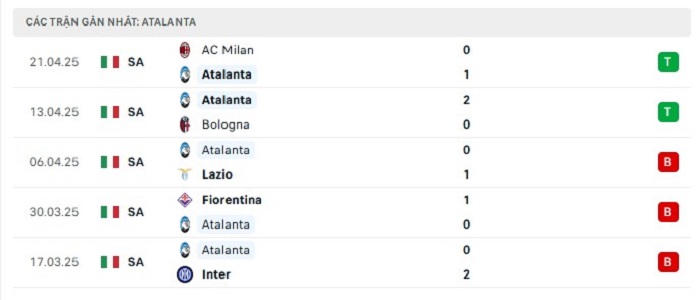 - Phong độ Atalanta