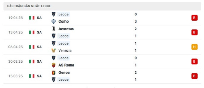 - Phong độ Lecce