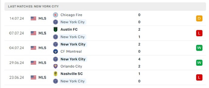 Phong độ gần đây Atlanta United vs New York City