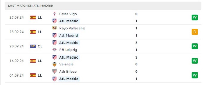 • Phong độ Atletico Madrid