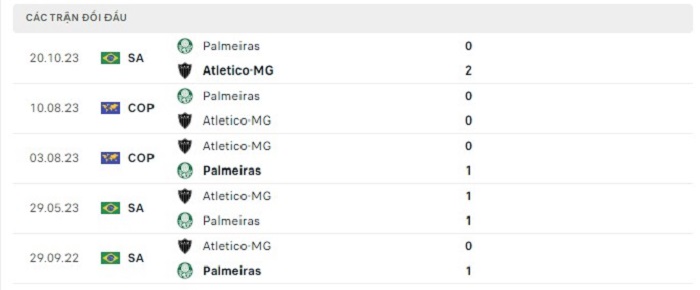 Những lần gặp nhau giữa Atletico Mineiro và Palmeiras trong quá khứ vốn có khsa ít bàn thắng ghi được, cụ thể là 8 trong 10 lần gặp nhau của hai đội chỉ có từ 2 bàn trở xuống. Điều này có thể thấy được lối chơi khá chắc chắn mà hai đội đã tạo nên. Bên cạnh đó hàng thủ của Atletico Mineiro cũng khá chắc chắn trong khi Palmeiras chưa ghi bàn quá ấn tượng ở mùa giải năm nay. Vì vậy tỷ số trận đấu cũng sẽ khó có thể xuất hiện nhiều trong trận.